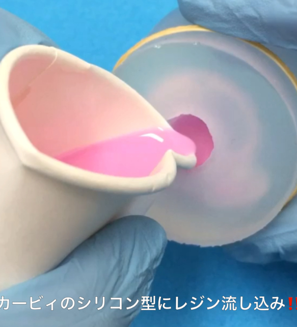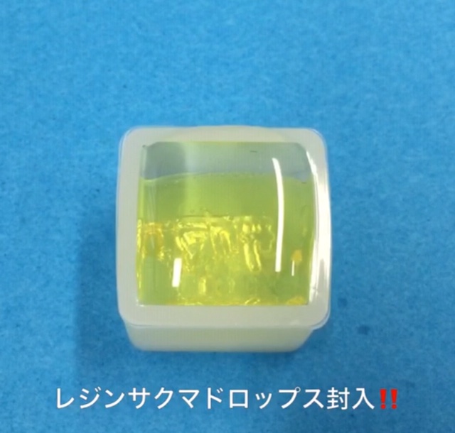 エポキシキューブにレジンハリボーグミ封入に挑戦 【2/3】